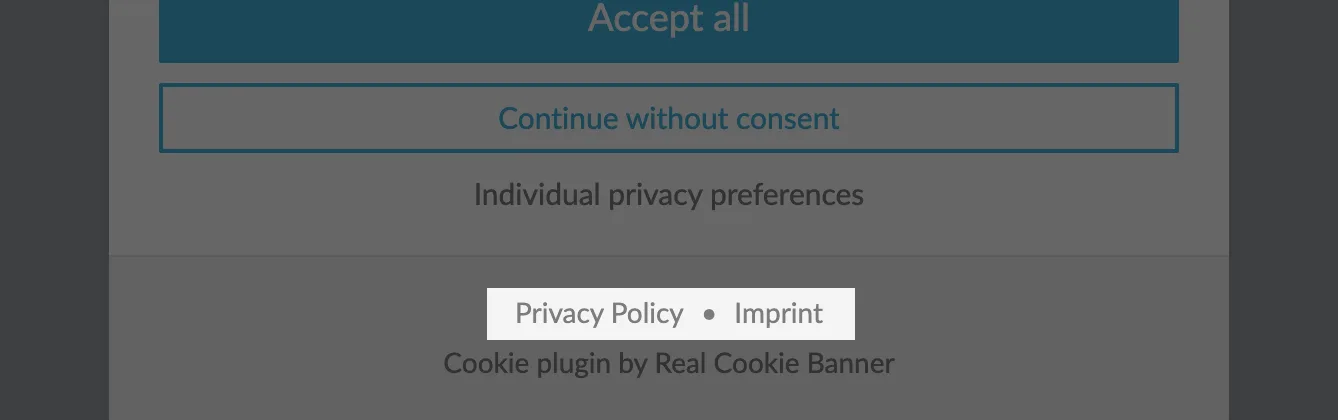 However, many operators are not aware that legally relevant web pages such as the imprint (depending on the country) and the privacy policy must also be accessible without cookie banners. After all, the website visitor must be able to inform himself in detail before giving consent as to whom exactly he is giving consent to and for what purpose.