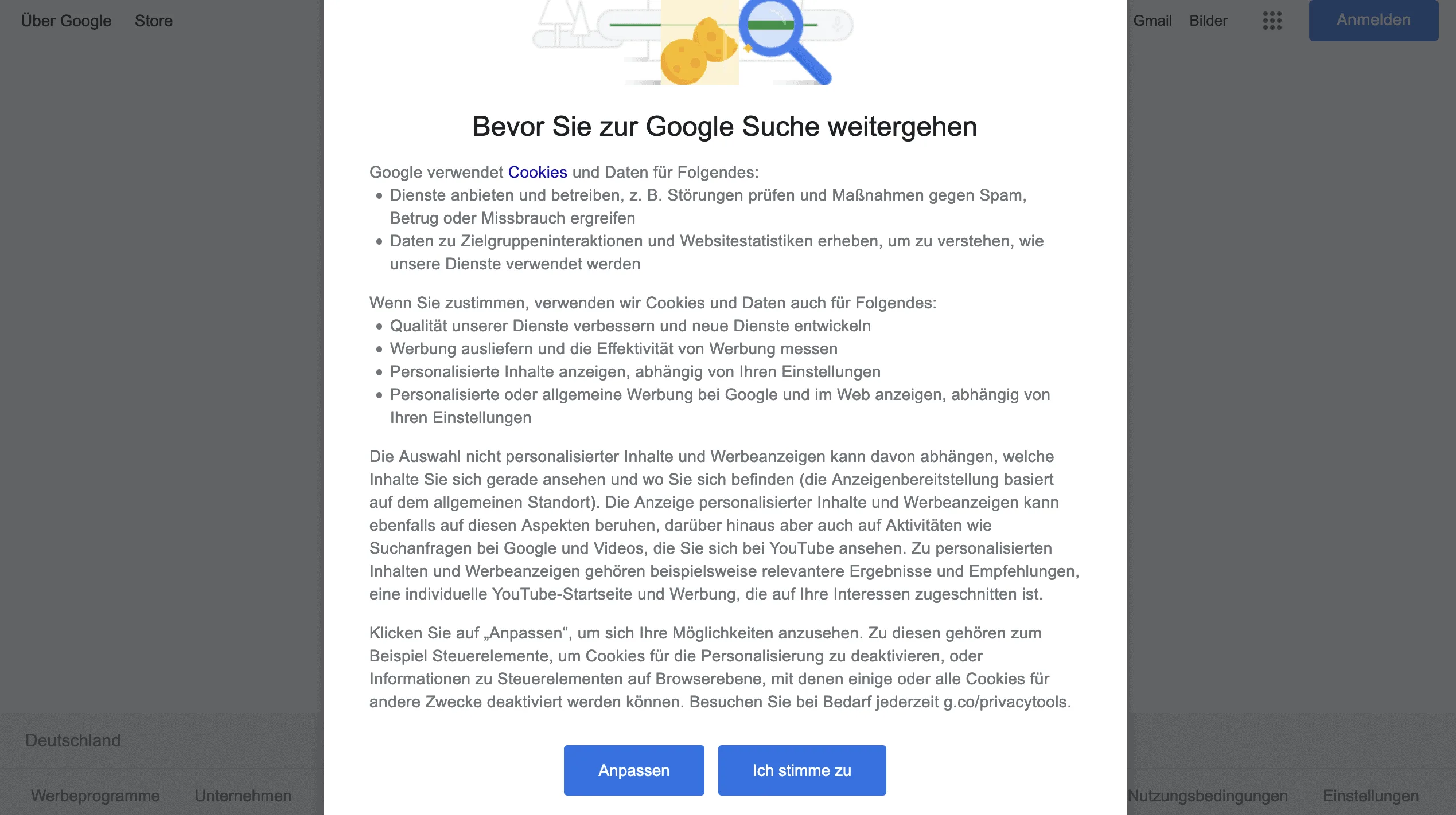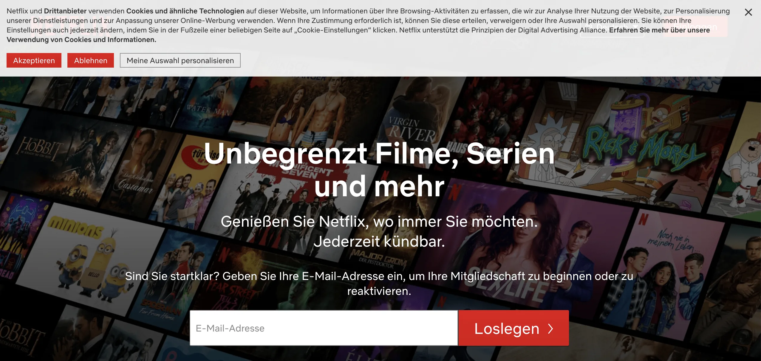Who would have thought it: even big players in the Internet business are not without their faults. On the contrary: refuse cookies? No way! This cookie banner is the perfect example of a click-maze with bouncer character. On a positive note, however, access to legally relevant pages is again guaranteed. In addition, detailed information on the use of cookies is provided.