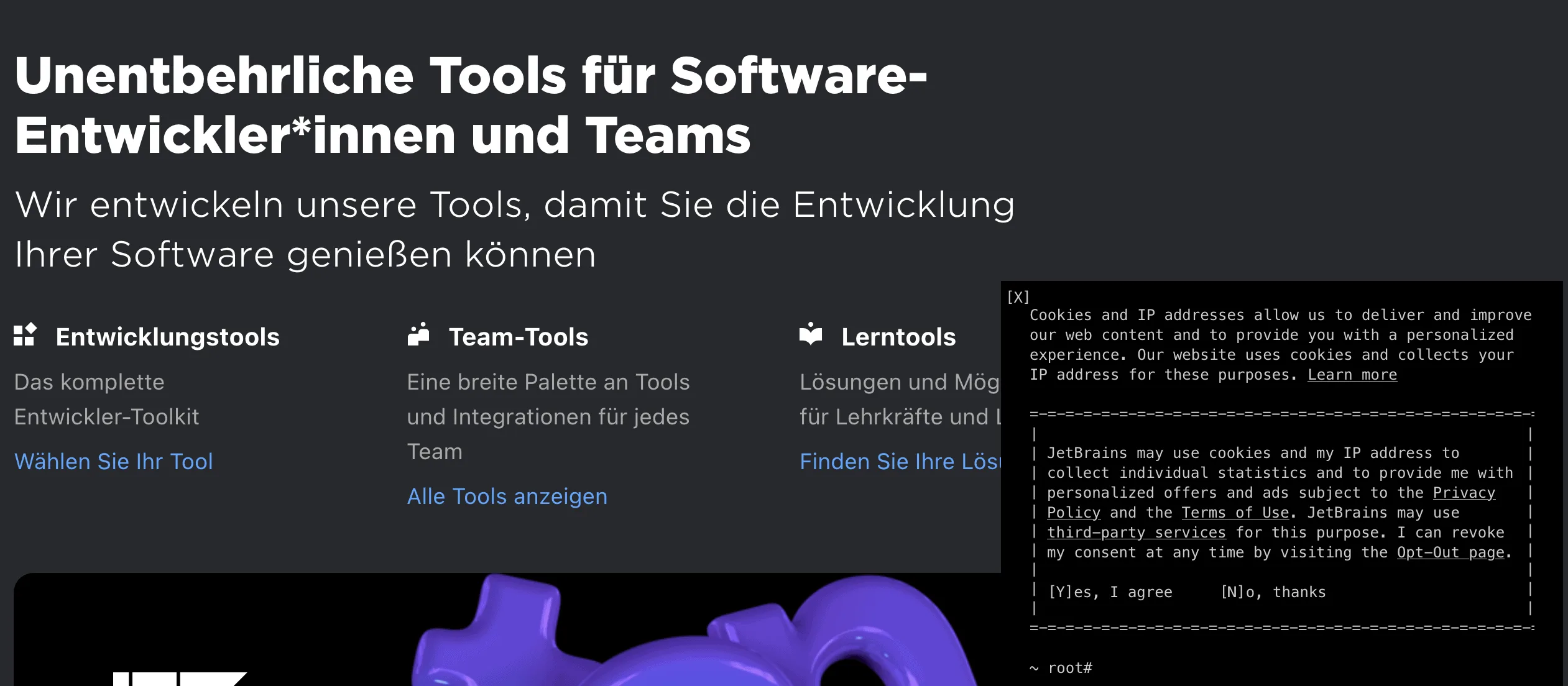 In terms of layout, the cookie banner again adapts perfectly to the target group. In addition, the purpose of obtaining consent, the option of rejecting cookies and the reference to third-party providers are displayed.