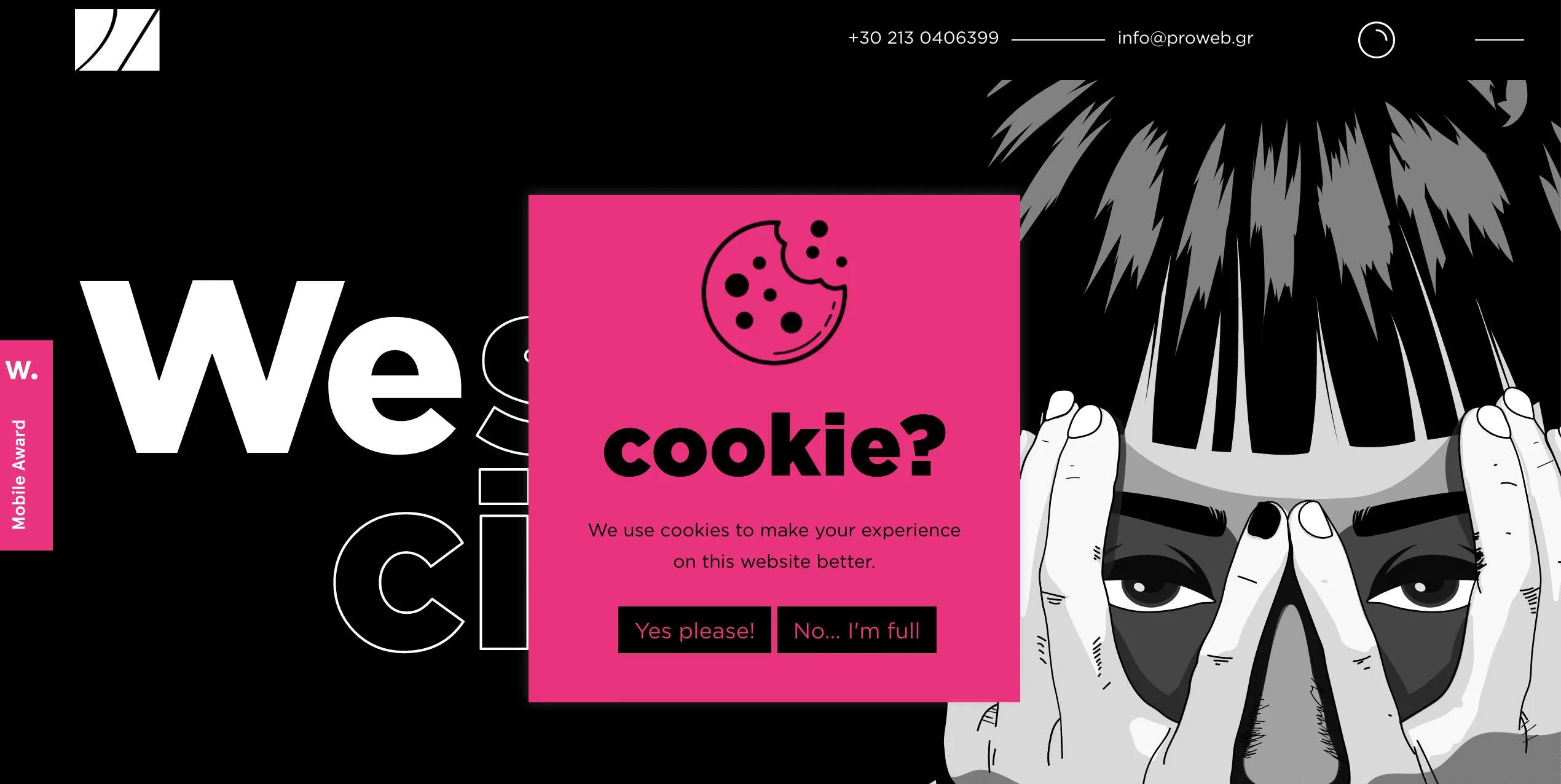 This cookie notice looks super stylish, but lacks essential information and is therefore not legally compliant. It neither informs about the benefit of using cookies, nor which cookies are involved. Even though the button for rejecting cookies in this example was implemented very creatively, it is questionable whether this is legally compliant at all. According to several rulings, a “reject” button should be clearly labelled.