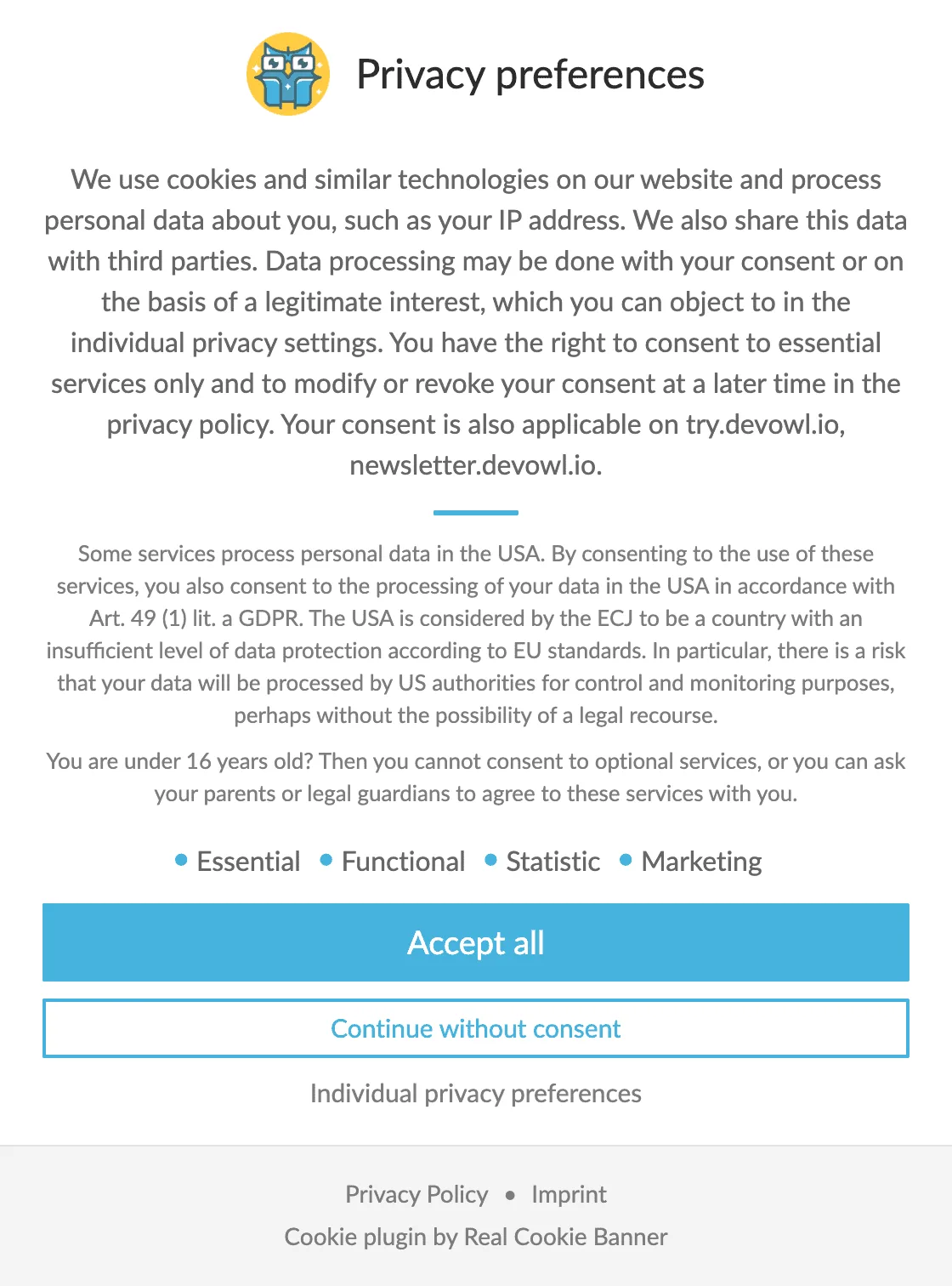 In short: the legal requirements. Who doesn’t love reading heaps of legal texts? We can definitely understand if reading laws written in legalese – let alone understanding them – is not part of your preferred reading 🤯 Especially when it comes to a small hobby blog, the effort usually seems to be far too great for many website operators. As a result, the simplest requirements, such as the presence of a cookie banner, usually fail.