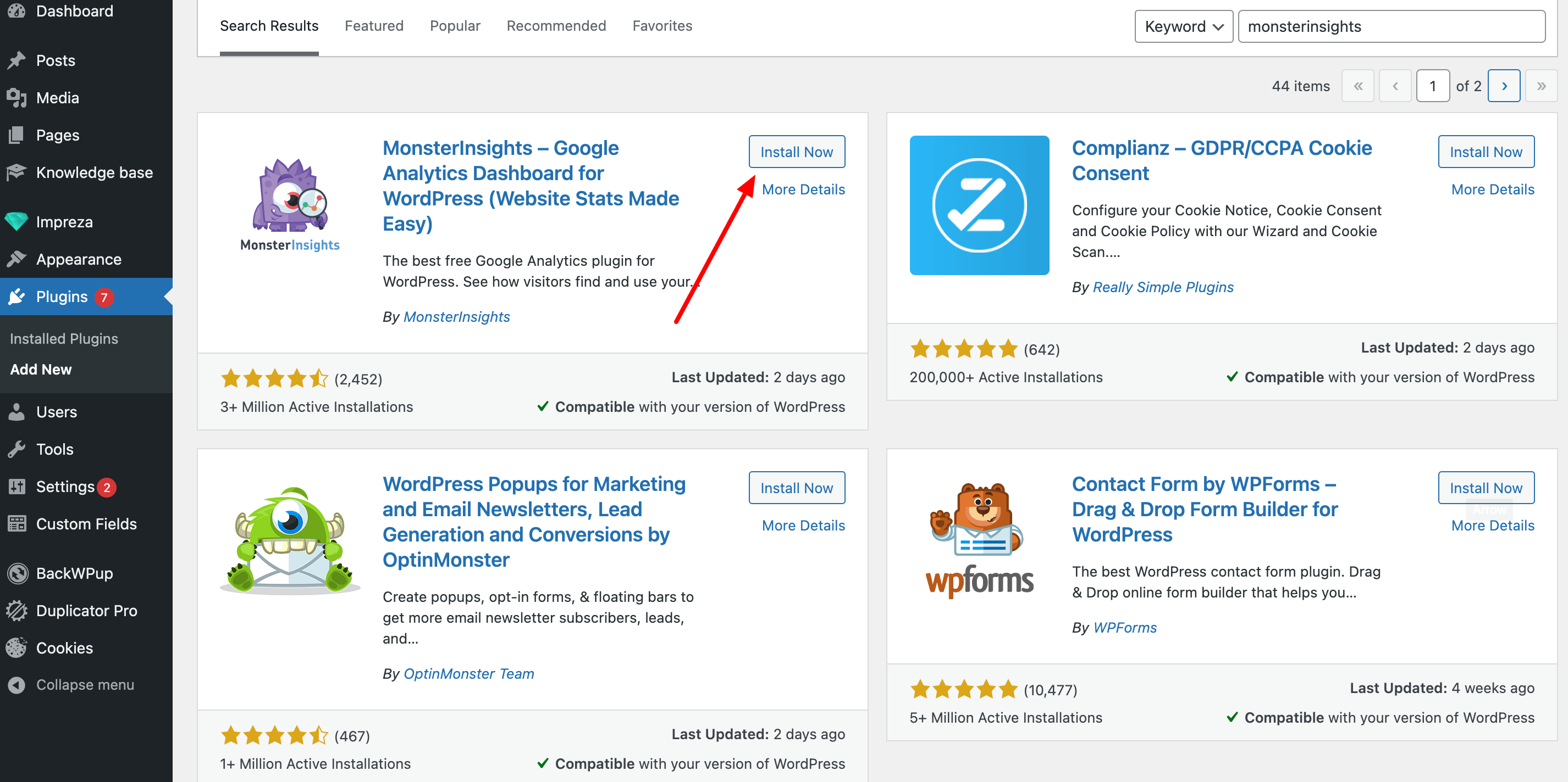 - Gib in das Suchfeld Plugins durchsuchen... "MonsterInsights" ein.
