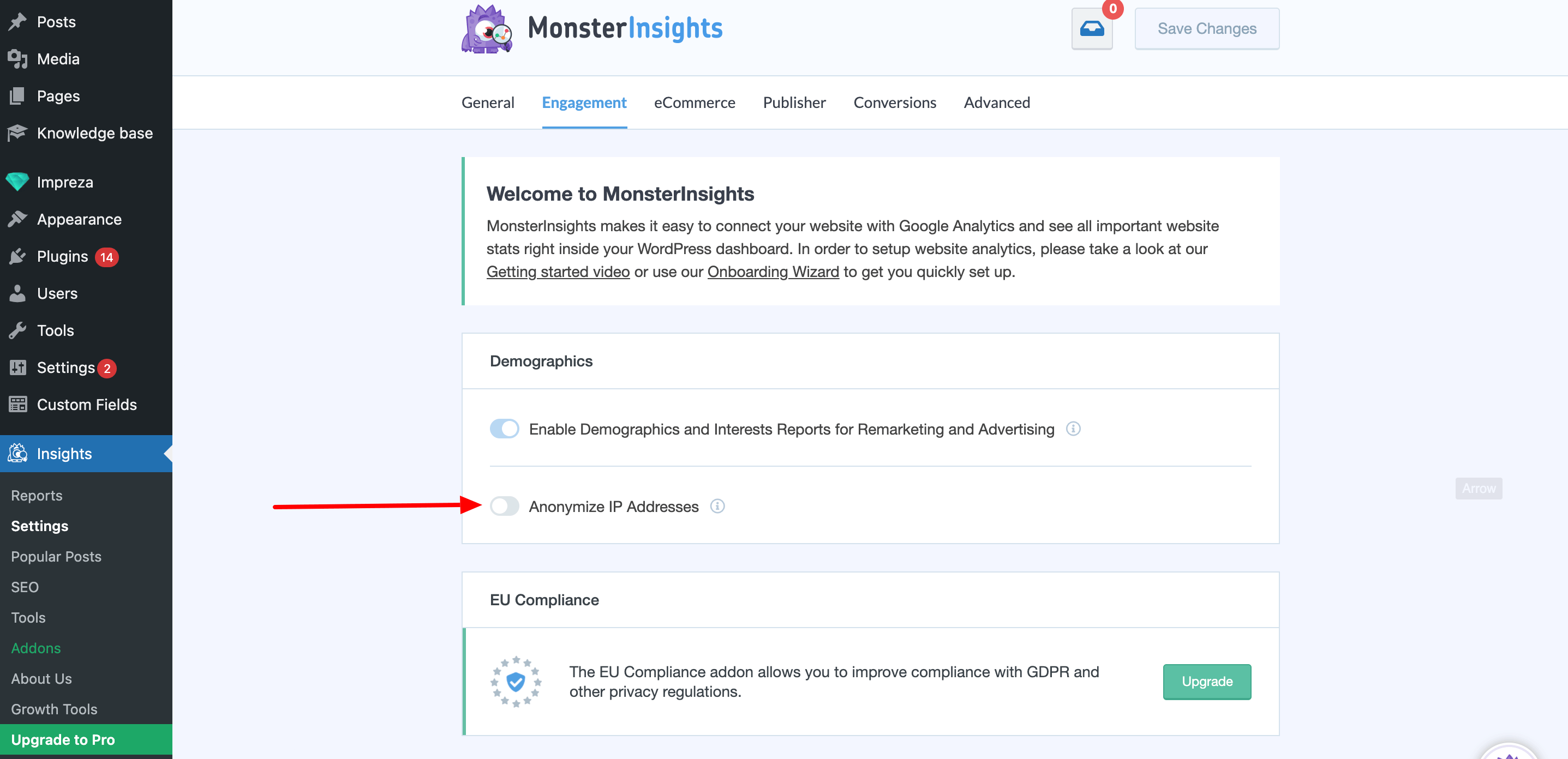 Einbindung von MonsterInsights mit IP-Anonymisierung