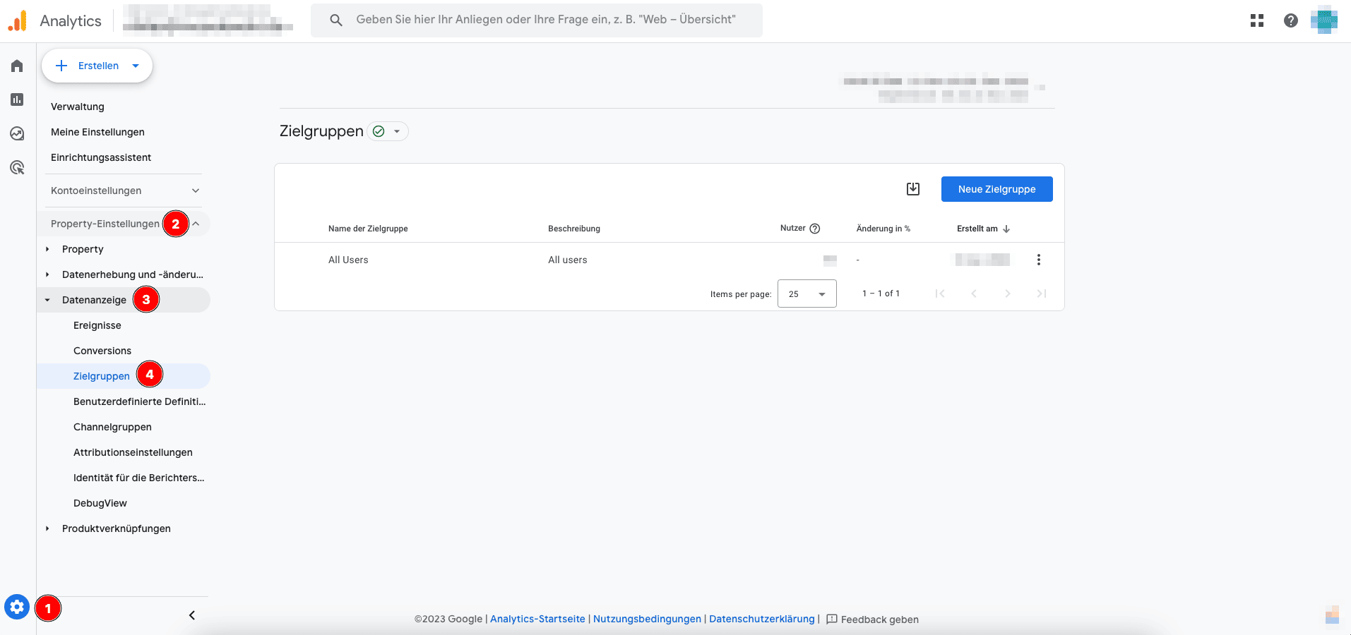 📍Verwaltung (Zahnrad) > Property-Einstellungen > Datenanzeige > Zielgruppen
