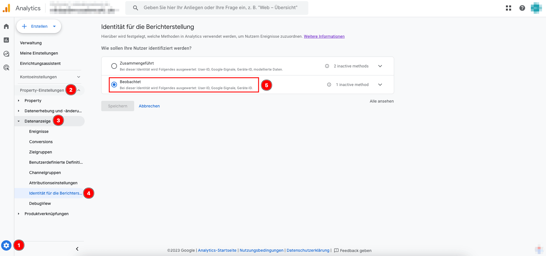 📍Verwaltung (Zahnrad) > Property-Einstellungen > Datenanzeige > Identität für die Berichterstellung