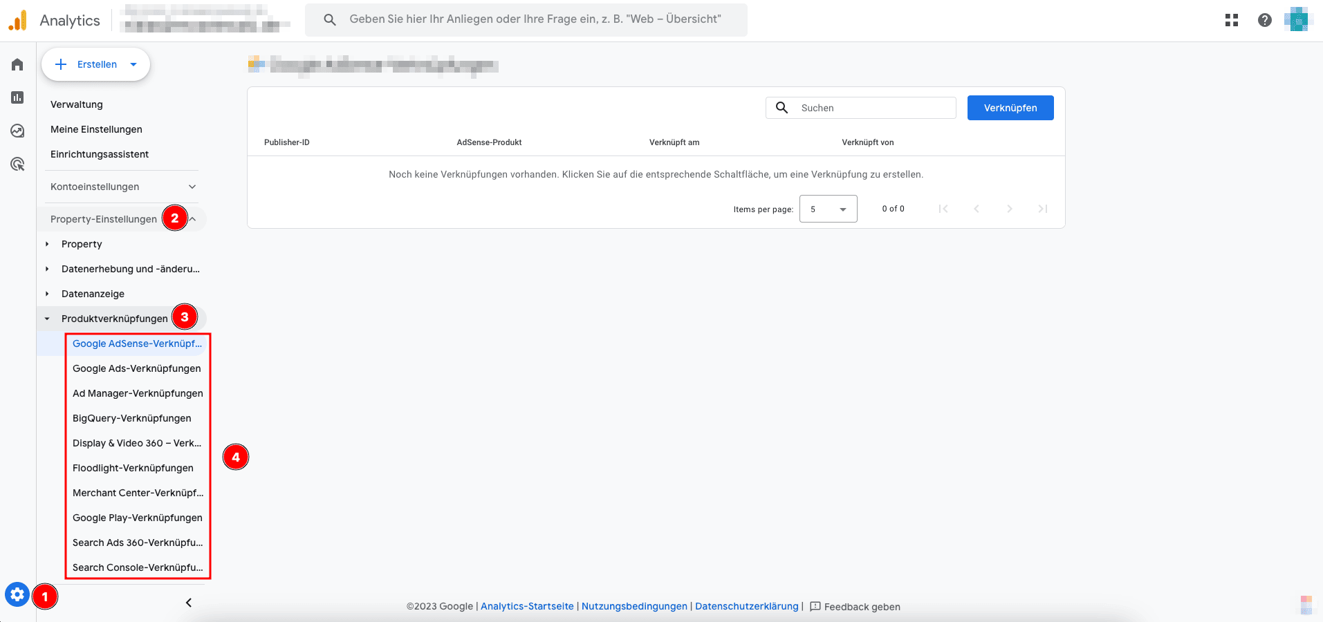 Diese Einstellung ist nur relevant, wenn du andere Produkte von Google verwendest und mit deinem Google Analytics Account verknüpfen willst. Um möglichst Daten-minimiert zu arbeiten, solltest du dir auch hier gut überlegen, welche anderen Produkte von Google du wirklich benötigst und an welche du deine Daten aus Google Analytics freigibst. Beachte bitte, dass wenn du Produktverknüpfungen verwendest, du dies in deiner Datenschutzerklärung und im Cookie Banner gegenüber deiner Website-Besucher transparent darstellen solltest.
