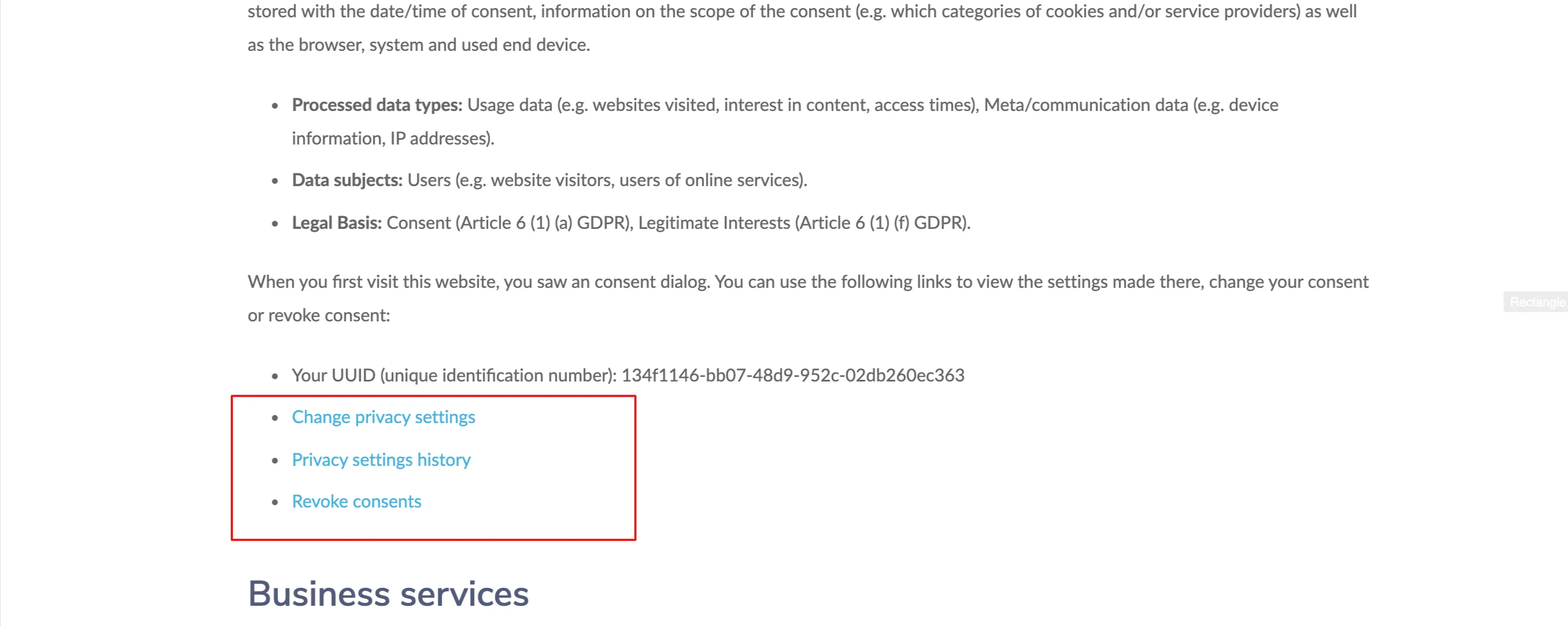 #consent-change: Privatsphäre-Einstellungen ändern#consent-history: Privatsphäre-Einstellungen Historie#consent-revoke: Einwilligungen widerrufen