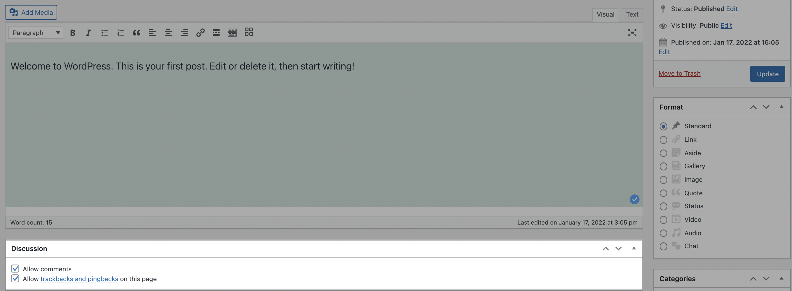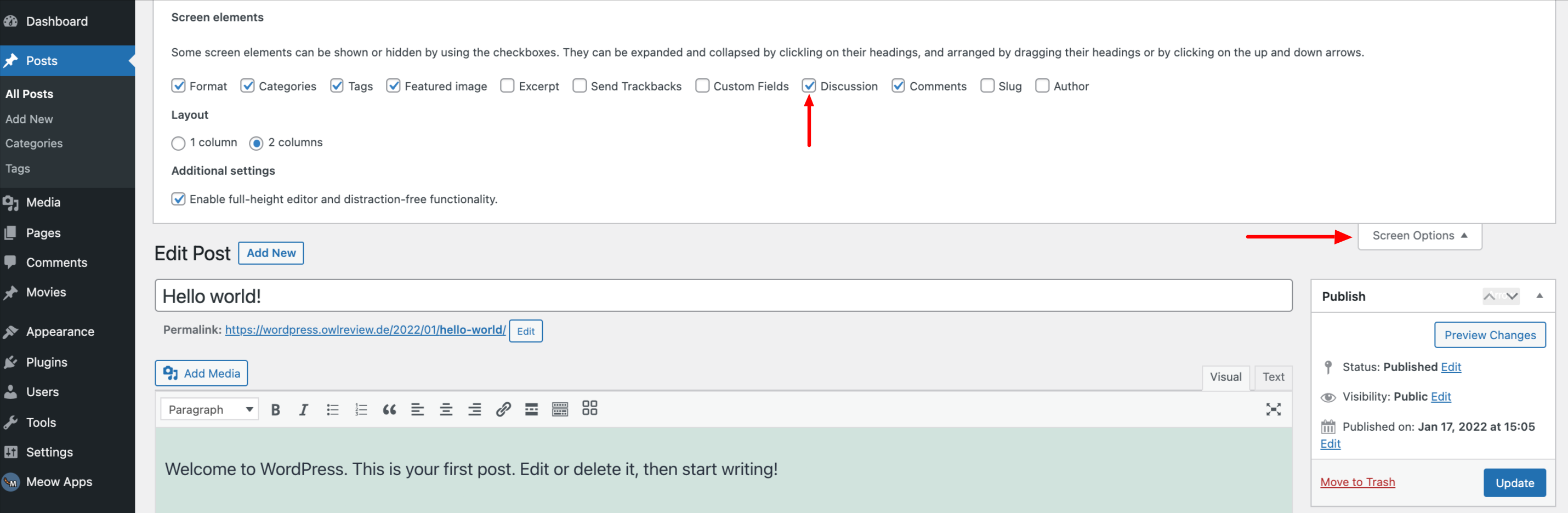 Sehen wir uns anschließend noch an, wie du Kommentare für ausgewählte Beiträge im Classic-Editor deaktivieren kannst.