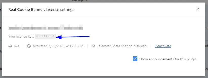 18bac38b-ax8u-4821-ab62-7hdcd10abe2d). - In your WordPress plugin you can enter and activate your license key under Plugins > Installed Plugins > [name of the plugin] > License.