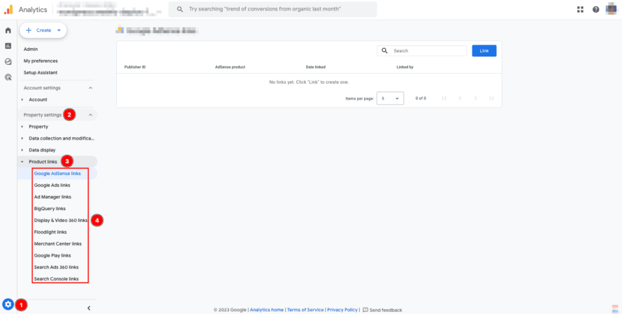 Finally, let’s have a look at the data display settings in Google Analytics, where you can define target groups and link Google Analytics with other Google products, for example.