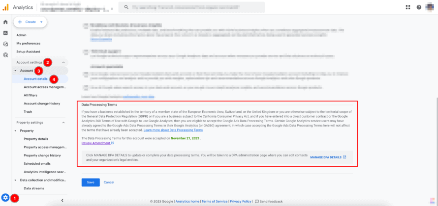 You also need to conclude a so-called data processing agreement (DPA) with Google. The agreement is automatically concluded with Google when the Google Analytics account is created.