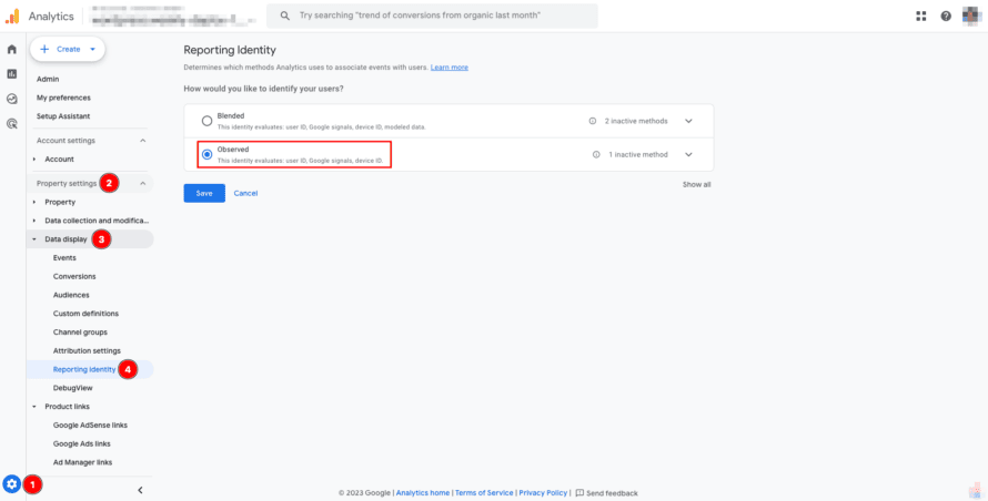 📍Admin (gearwheel) > Property settings > Data display > Reporting Identity