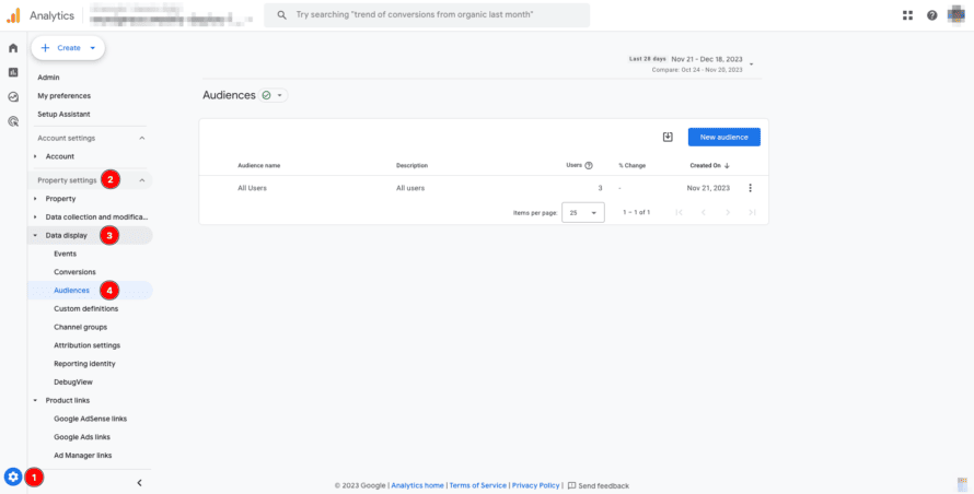 📍Admin (gearwheel) > Property settings > Data display > Audiences