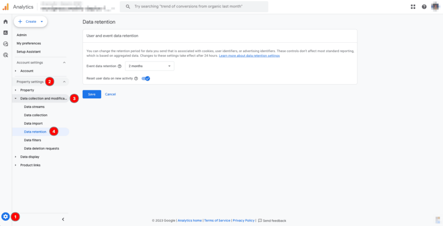 📍Admin (gearwheel) > Property Settings > Data collections and modifications > Data retention