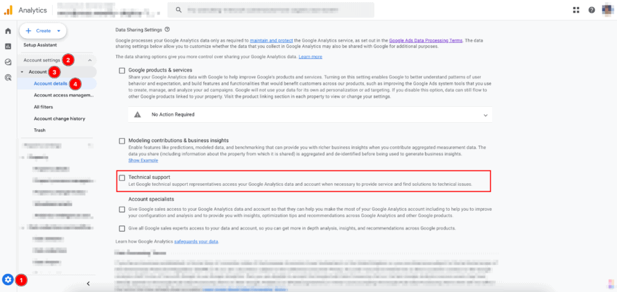 📍Admin (gearwheel) > Account settings > Account > Account details > Data sharing settings > Technical support