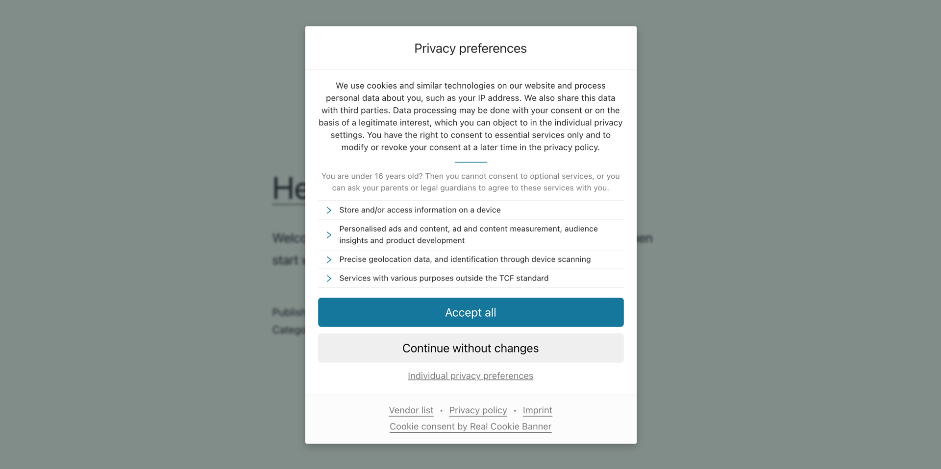 As a result, we have extended and improved numerous features in Real Cookie Banner. Since TCF is an industry standard designed with the support of lawyers, we have again tried to minimize theoretical attack surfaces for e.g. warning letters by providing additional information in your cookie banner.