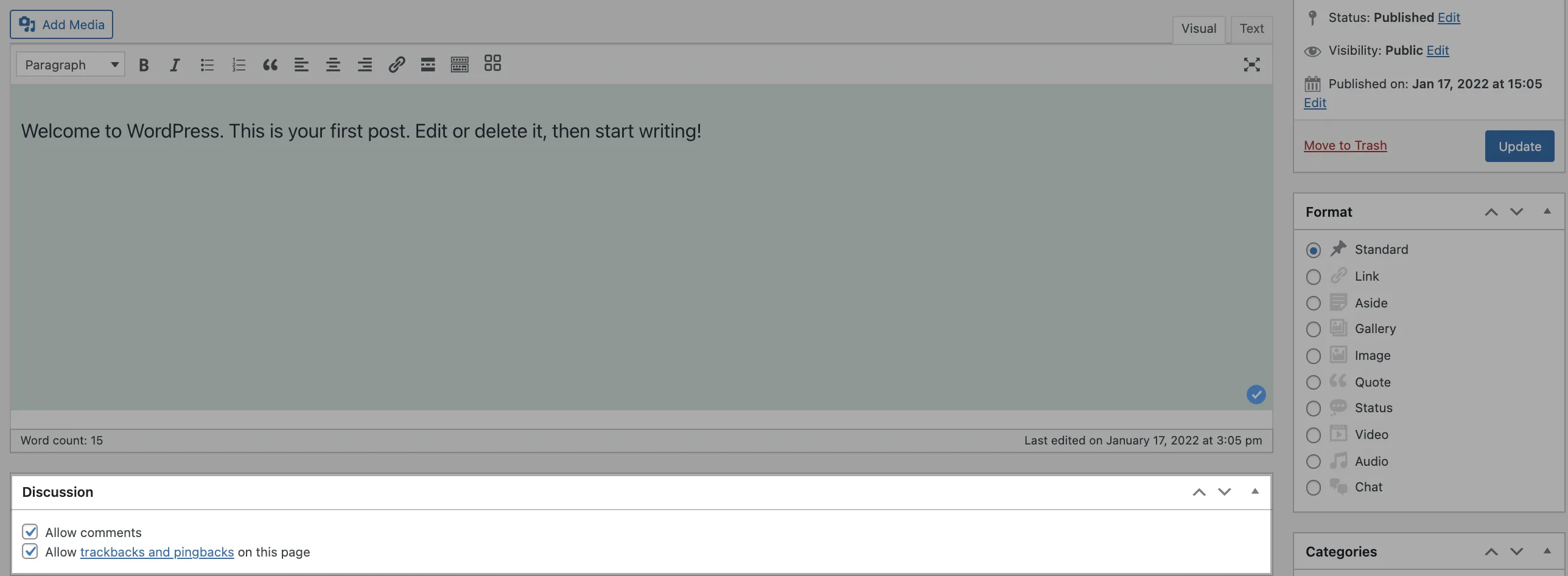 Let’s then look at how you can disable comments for selected posts in the Classic editor.